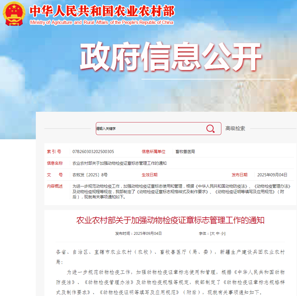 日前,农业农村部印发《关于加强动物检疫证章标志管理工作的通知》,制定了《动物检疫证章标志规格样式及制作要求》和《动物检疫证明等填写及应用规范》。我省为进一步规范动物检疫工作,强化动物检疫证章管理,动物检疫“身份证”将有新变革。