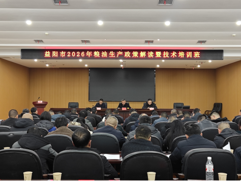 1月19日,益阳市农业农村局组织举办全市2026年粮油生产政策解读暨技术培训班。本次培训旨在深入学习领会中央、省关于粮食安全和“三农”工作的最新精神,系统解读粮油生产及种业发展相关政策,开展关键技术培训,动员全市农业农村系统进一步统一思想、明确任务、提升能力,全力打好明年粮油生产“主动仗”,为保障粮食和重要农产品稳定安全供给夯实基础。市农业农村局党组书记、局长陈孟球出席培训班并作培训动员讲话,局党组副书记、副局长李小阳主持培训。各县市区农业农村局分管副局长,种植业管理股(站)长、种业管理股(站)长,早稻任务面积1万亩以上的乡镇人民政府分管领导或农业综合服务中心主任等近百人参训。